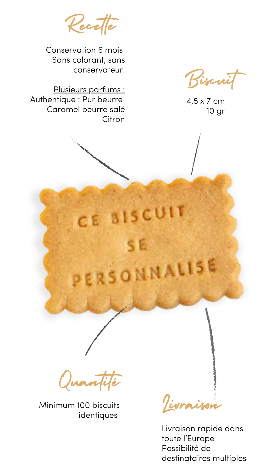 • Remercier vos clients avec une attention qu’ils n’oublieront pas : un “biscuit d’or” glissé dans leurs colis.